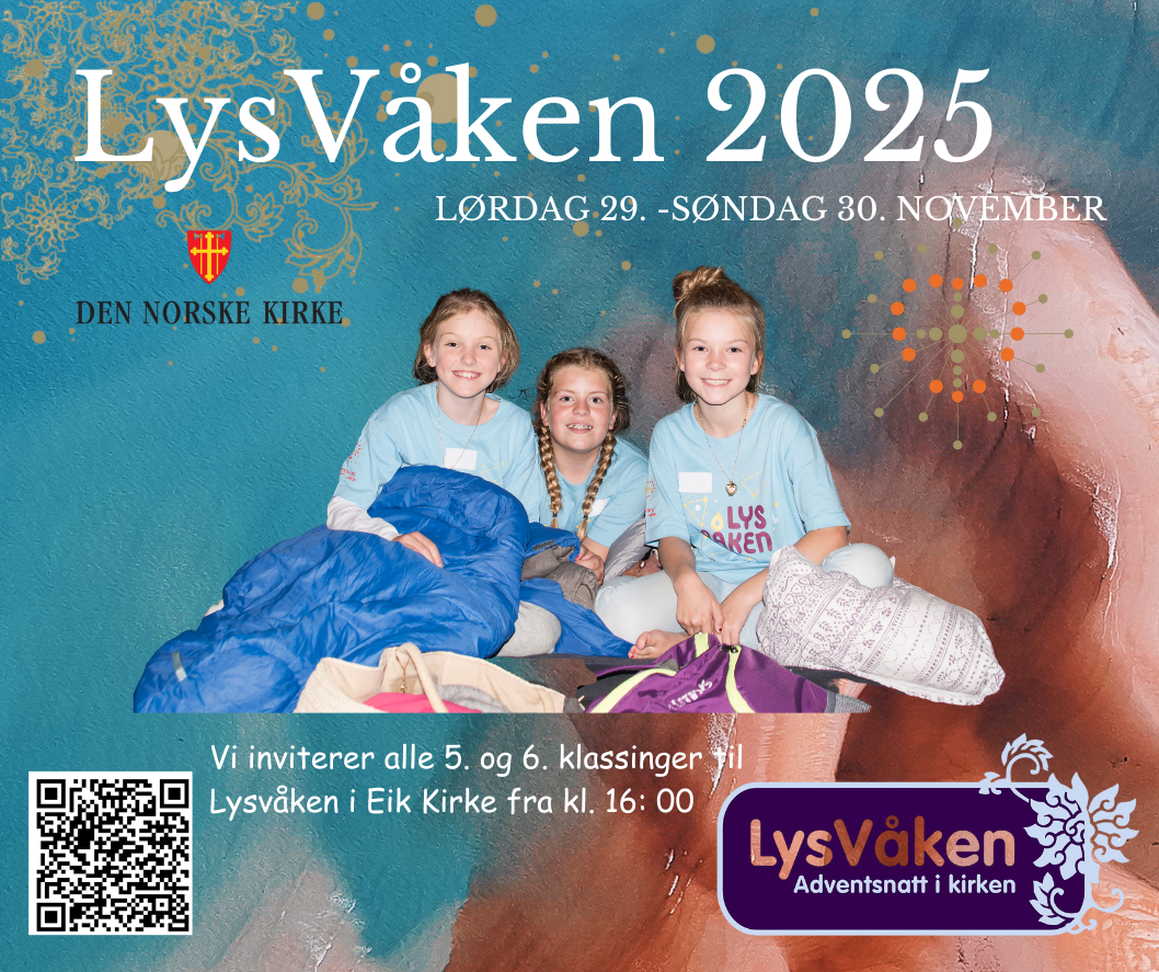 Vi inviterer alle 5. og 6. klassinger til Lysvåken i Eik Kirke
